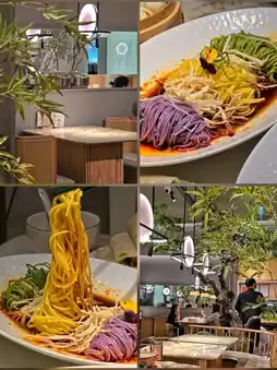 Made with three different colored cold noodles, this dish is visually appealing. The noodles are chewy, and the sauce at the base is not only spicy but also slightly tangy, offering a fragrant and appetizing taste.