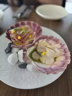 The pickled scallops, pickled oily fish and overnight dried squid are served in shells and look beautiful. The ingredients are also very fresh, which is best with white wine.