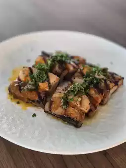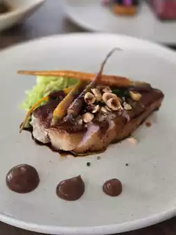 Carnivore friends don't worry, the layered grilled pork loin, accompanied by a delicious gravy sauce, will surely satisfy you, at least I think it's great.