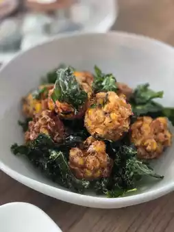 Fried corn cakes, debuted in the shape of a bob, accompanied by feathered gold and blue, is my recommendation.