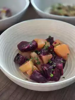 There are plenty of options for healthy friends, such as red golden cabbage with eight treasures sweet vinegar flavor, crisp mini romaine lettuce salad, exquisite burrata cheese with bread, and long-stemmed broccoli.