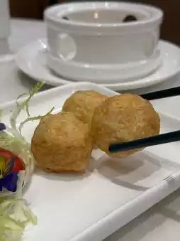 A traditional Chaozhou homemade dish, these balls are crafted from shrimp and crab meat mixed with other ingredients, shaped into round and rectangular forms for distinction. The crispy exterior and juicy, flavorful filling are even better when dipped in sweet and sour sauce.