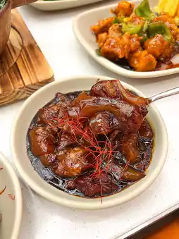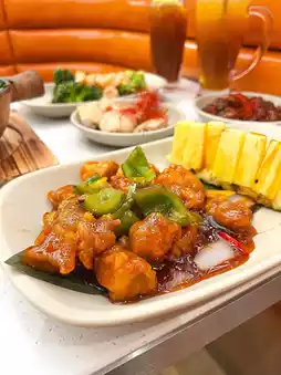 ❥$𝟵𝟴 Sweet and sour crispy pork with mountain dregs sauce:
