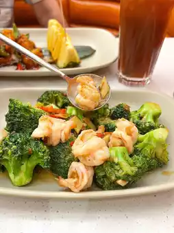 ❥$𝟭𝟬𝟴 Fried shrimp with broccoli in XO sauce: