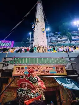 The island's colorful folk crafts, such as paper-made statues, floats, mountain buns, and peace buns, as well as qilin dances, gongs and drums, and Taoist music 🎏, these folk performing arts 🐲 are all showcased through this traditional festival. The annual “Bun Carnival” is very popular and attracts many local and overseas tourists to participate. The bun grabbing competition was tense and exciting 🧗🏻♀️. The gongs and drums for the start of the competition sounded 🎷, and there was cheering and shouting at the scene.
