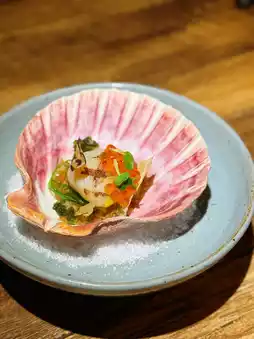 The mature Hokkaido scallops are very thick, tender and smooth, and paired with Japanese yuzu pepper sauce, Middle Eastern millet and salmon roe, the flavor and texture are rich.