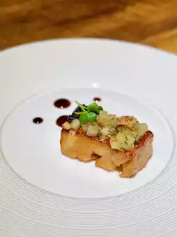 Matsusaka pork is fat and lean, with tender meat and rich gravy, and is served with truffle balsamic vinegar sauce, miso, and green apple cubes to neutralize the greasiness.
