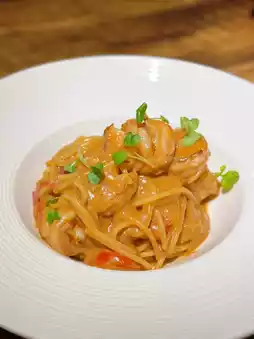 The pasta was cooked to perfection, with a chewy texture, each piece was covered in lobster juice, and there were many fresh and tender shrimps, a pleasant surprise in the ordinary.