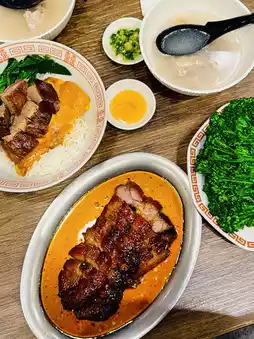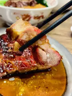▪️His char siu is really full of color and flavor, each piece is moderately fat and lean, the outside is grilled to a little slightly charred so, when you bite down the meat is tender and juicy, really super delicious! ! 😋😋 Its sauce is also a masterpiece, very tasty, I couldn't help but take some vegetables to eat 🤣🤣🤣
