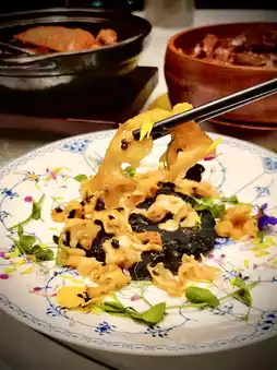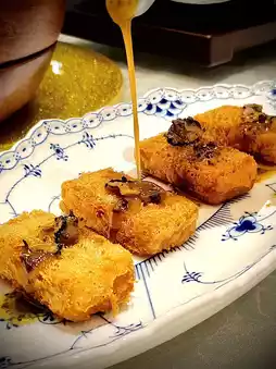 First, the taro puree is pressed several times to make the taste become very smooth, then fried until the outer layer is crispy, absolutely crispy on the outside and tender on the inside. Coupled with the black truffle sauce, an additional freshness is added, which I personally like very much 😍 No wonder it became an award-winning dish!