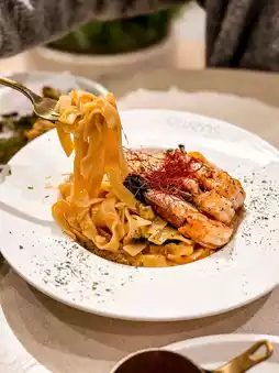 The lobster sauce is rich and creamy, with rich layers of flavor. The tiger prawns are big and chewy, and the wide noodles are highly sauced. Each piece is filled with lobster essence, giving it a luxurious feel!