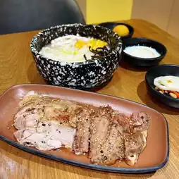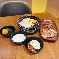 There are a lot of pork and thin-cut steak. The pork is a bit dry, but it tastes good. The steak is juicy, and it tastes good when mixed with hot spring egg and udon.