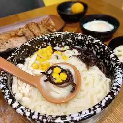 You can choose 1 of 3 Udon soup bases: Bonito Clear Soup/Kurobuta Pork Bone Soup/Miso Soup