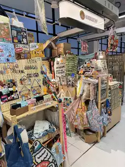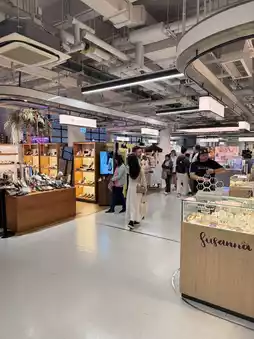 1️⃣ First Floor: About a quarter of the space is occupied by restaurants, while the rest features various small stalls selling local specialty products, food items, and even coffee stands.