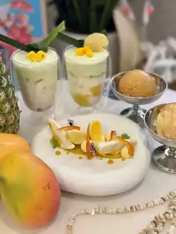 🥭 Taste: Super rich dessert! Mango coconut syrup is sweet and creamy, with sweet and sour pineapple honey and candied grapefruit.