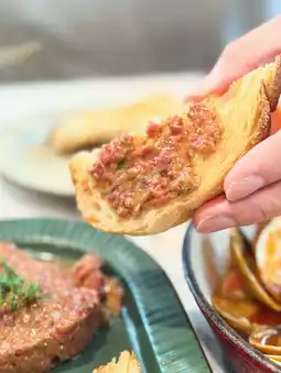 The first dish is the French raw beef tartar + smoked salmon platter, I didn't expect a large portion of beef tartar 🐮 with a little mustard flavor very fresh plus crispy garlic bread, Perfect match😋 And the smoked salmon platter is attractive enough, plus lemon juice sour and salty 😋 very appetizing!