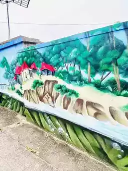 After entering the village, there are various murals, cute and attractive, and there are several photo spots, such as the large mural entering the village, soda cans, wind chimes, etc., there is also a place to take pictures of mangroves🤫 The green is very beautiful