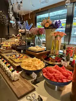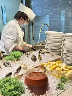 The buffet offers a wide variety of dishes, with seafood being the highlight: lobsters, clams, jade snails, and king crabs are piled high like small mountains. There's also freshly sliced bluefin tuna, sashimi, and freshly shucked oysters, ensuring top-notch freshness. Just indulging in the seafood alone makes the meal worth it.