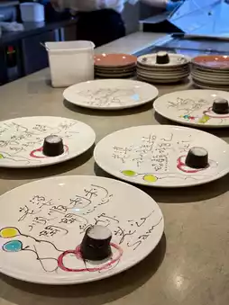 For dessert, there’s an assortment of cakes, with unique options like tofu pudding and fresh milk rolls. The highlight, however, is the molten chocolate cake, where diners can write their blessings for the chef to decorate the plate—a thoughtful touch.
