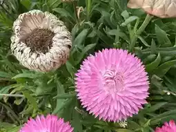 After saying goodbye to the water droplets, Wife and Husband walked along the waterfront towards Wan Chai and discovered pink #Strawflowers.