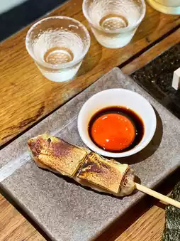 A local dish from Sendai, minced chicken mixed with beef tongue, dipped in rich and savory tsukimi sauce.