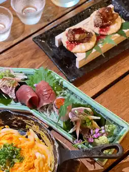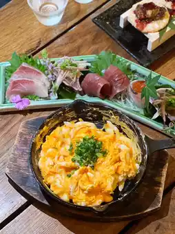 Delicate and smooth amberjack with rich collagen and a unique refreshing taste; tuna akami is bright red and firm, with lower fat content and a stronger fish flavor; sea bream is delicate and soft, with a light and slightly sweet taste; bonito is half-grilled with straw fire at high temperature to sear the surface to half-cooked, adding a unique smoky flavor.