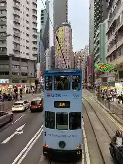 Double-decker trams run on Hong Kong Island. You can board the tram at any stop in the city. The fare is 3 Hong Kong dollars, and the price is the same no matter how far you go. You can pay with an Octopus card or contactless credit card payment.