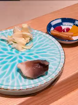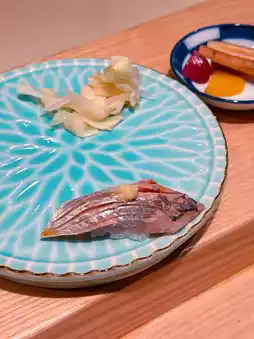 The mackerel is properly pickled in vinegar, with acidity suppressing the fishy smell. The flesh is extremely fatty and delicious!