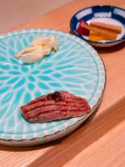 The black cod is rich and fragrant, with yuzu pepper adding a spicy aroma to cut the greasiness. The fish is silky like butter, and the acidity of the vinegared rice perfectly balances it!