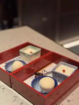 Finally, for dessert, there was almond jelly and vanilla snow mochi. The almond jelly was really delicious, melting in your mouth and leaving a lasting impression! 🍮😋