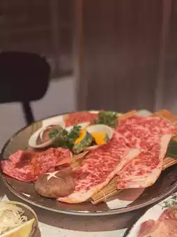 For BBQ, a large plate of grilled Kuroge Wagyu sirloin, the staff recommended we cook it to medium rare and pair it with a soft-boiled egg. The texture was top-notch, truly a delight! 😍💖