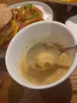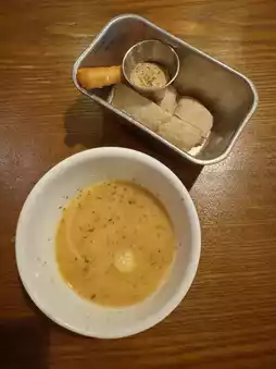 A must-try for mushroom lovers! The soup is rich and creamy with a strong mushroom flavor. Served with a basket of soft bread, a perfect match.