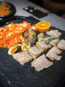 Korean BBQ brings authentic Korean flavors, from the appetizer snacks to Jeju pork belly, you can really feel the sincerity of the restaurant. It was my first time seeing a snack (all-you-can-eat) of marinated raw squid🦑, which truly surprised me👍🏻
