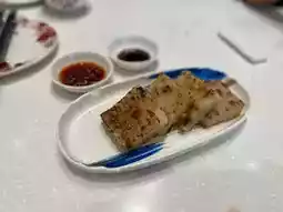 🥕 The turnip cake is pan-fried crispy on the outside and soft inside, delicious in flavor. Dipped in chili sauce, every bite is memorable.