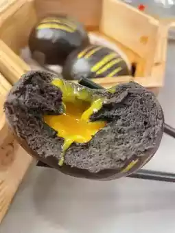 Matte black bamboo charcoal skin, when torn open, golden lava flows out abundantly