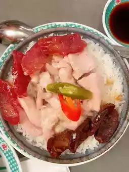 Steamed Chicken Rice with Chinese Sausage and Liver Sausage