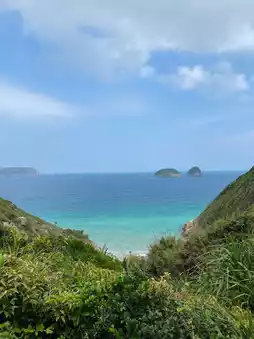 Ham Tin Wan is located within Sai Kung East Country Park and is one of the four bays in Sai Kung. In recent years, it has been designated by the Agriculture, Fisheries and Conservation Department as a camping site.⛺️ During holidays, many tourists from around the world come here to camp on the beach, accompanied by the sound of the waves.