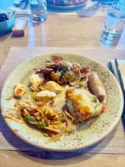 The seafood counter in the buffet area is definitely the highlight. Sashimi, chilled shrimp, chilled crab, and other basic seafood are all available for you to enjoy, with quick replenishment. The freshness of the seafood is satisfying, and paired with Japanese soy sauce and wasabi, it really whets the appetite.