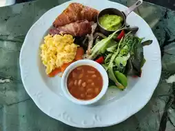 • All-day breakfast (scrambled eggs + avocado spread + croissant + salad)