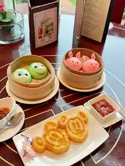 Crystal Lotus is a Chinese restaurant located on the first floor of Hong Kong Disneyland Hotel. Even if you are not a guest, you can enjoy the super cute Disney dim sum only during lunch time! Hong Kong Disneyland is the only place in the world where you can eat Disney dim sum! As the name "Crystal Lotus" suggests, the interior of the restaurant is decorated with a stylish space inspired by lotus leaves! It's a restaurant you definitely can't miss if you go to Hong Kong❣️