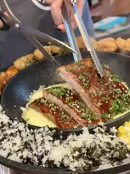 The ribs are very flavorful, a bite is out of the bone, the staff on the spot to match the ribs and cheese, eat a mouthful of silky "cheese" flavor, accompanied by fried chicken legs, seaweed vermicelli rolls, cheese corn, Korean dumplings and seaweed rice, portions.