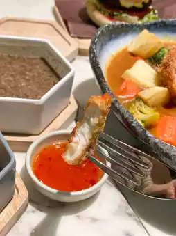 The "pork chop" is crispy, the "meat" is tender, the Japanese curry is mildly spicy and sweet, mixed with potato and carrot "meat," and eaten with chewy pearl rice β really delicious ~