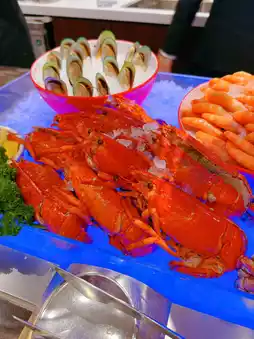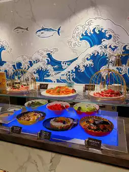 The restaurant offers everything from cold seafood platters, sushi, sashimi, to hot meat dishes and desserts, covering all bases ๐ The presentation is exquisite with a wide variety of options ๐ Truly delightful ๐ค
