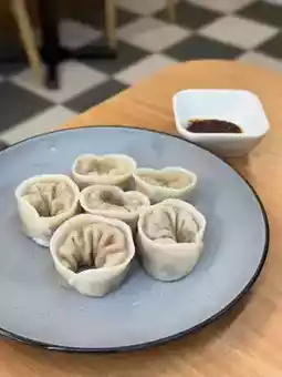 Six Korean steamed dumplings per serving, excellent value! The dumpling skin is soft with a slight chewiness, filled with kimchi pork that is full and mildly spicy, very appetizing~