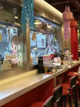 The restaurant’s decor features a Thai street style, with many colorful Thai wall hangings, giving a feeling of being in a small alley in Bangkok. I heard the staff and chefs speaking Thai, making the whole experience very Thai.