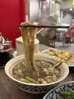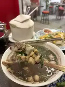 The broth is rich and aromatic, perfectly balanced in flavor, with a hint of basil fragrance after tasting. The pork slices are thin and even, tender and retain the pork’s natural aroma. High quality, can be considered a budget-friendly alternative to the famous Samsen boat noodles.