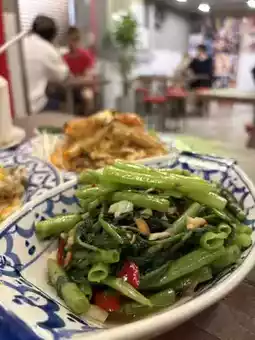 The morning glory is perfectly stir-fried with a slight wok hei, refreshing and not too salty. The garlic aroma is strong, and the spiciness is moderate, making it a great side dish to pair with other flavorful main courses.