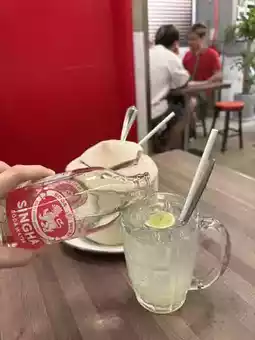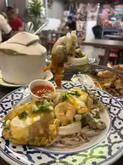 The omelette is packed with seafood, including fresh shrimp, oysters, and squid, full of umami flavor. Served with Thai sweet chili sauce, the overall taste is somewhat similar to Taiwanese oyster omelette. However, theirs is more moist, not the dry-fried type, so the texture is quite different from traditional Thai oyster pancakes.