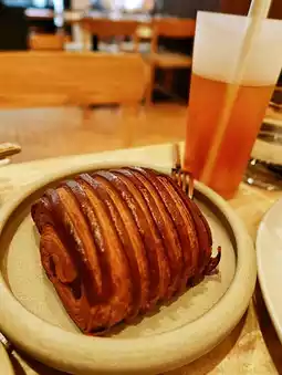 🥐 Pain Au Chocolat (HK$28): A slightly warm croissant wrapped around slightly bitter chocolate, rich and crispy.