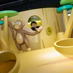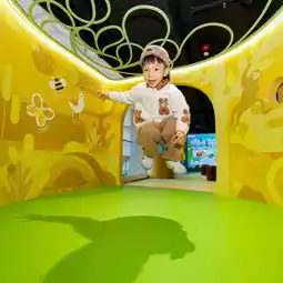 Adults can try shooting with a wide-angle and low angle to highlight the unique hollow patterns on the treehouse roof. Combined with the kids’ dynamic movements, the photos become more lively and rich!